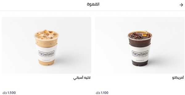 مشماش كوفي بار (كافيه): بعد الاستمتاع بمطعمنا المنوع، حرصنا على أن تكون تجربتكم متكاملة بتوفير كافيه لنقدم لكم القهوة، والمشروبات، وحلويات متميزة حتى لا تبحثون عن غيرنا عندما تفكرون في تجربة اكل متكاملة وشهية لكم ولعائلتكم